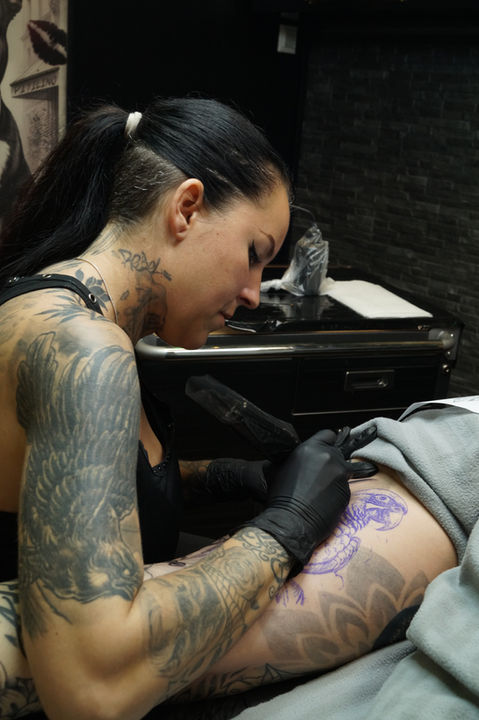 Evelyn ist seit über zehn Jahren mit Leidenschaft Tätowiererin. Als Allrounderin beherrscht sie viele Stilrichtigungen und hat sich besonders auf Cover-ups spezialisiert. Sie findet für jede Geschichte das passende Tattoo. Präzision, Schnelligkeit und ein Gespür für Details zeichnet Ihre Arbeit aus. Bei ihr steht nicht nur das Motiv, sondern auch das gute zwischenmenschliche Gefühl im Vordergrund.